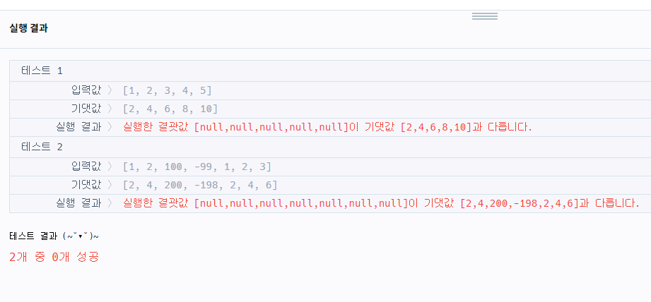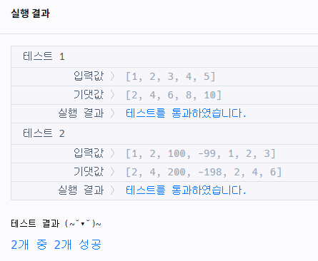 반복문 돌려서 배열의 원소 *2 한 다음 결과값 반환하기