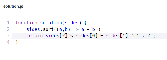 1. 가장 큰 변과 그렇지 않은 변을 구하기 위해 오름차순 혹은 내림차순 해준다.
