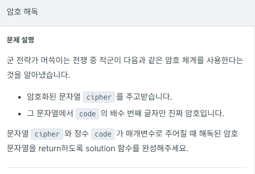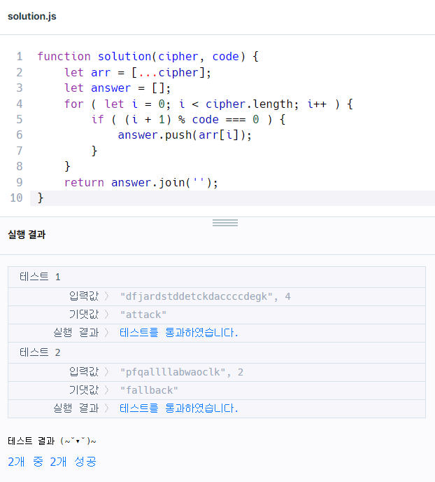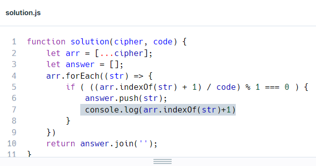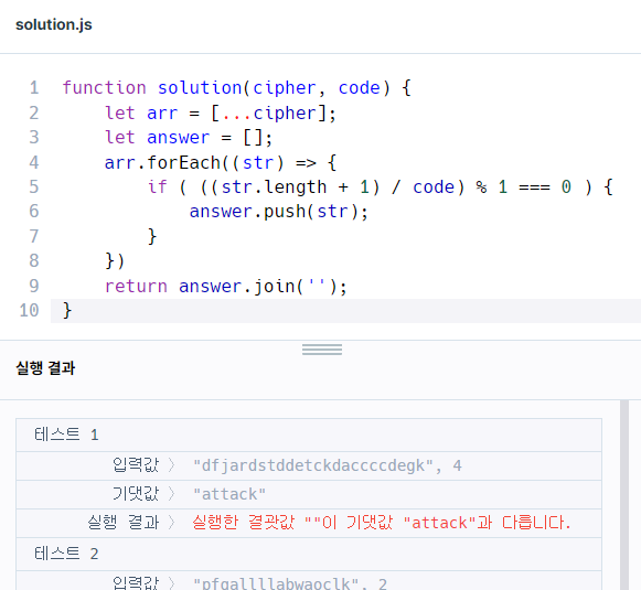 문자열 cipher 에서 code 의 배수번째 문자열만 뽑아야한다.. !