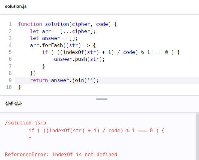 내가 작성하고 싶었던 것은 str 의 번째수 나누기 code 였다.! 그래서 배열은 0번째부터 시작이니까 +1을 해주었던 것이다.