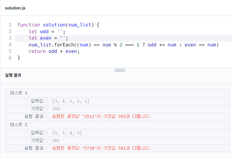 odd 와 even 변수에 문자열로 담아주었는데 그대로 더하니까 문자열이 나왔다.