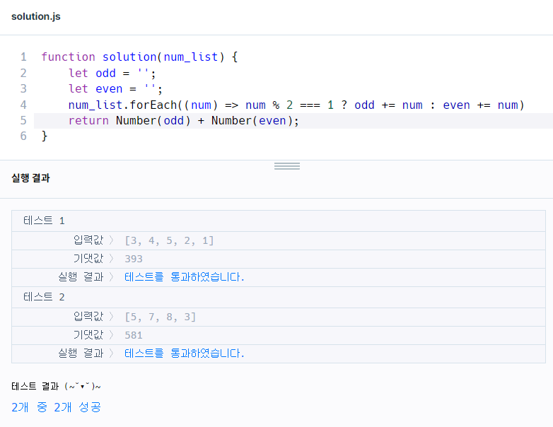odd + even 을 숫자로 형 변환해서 반환해주도록 하자!