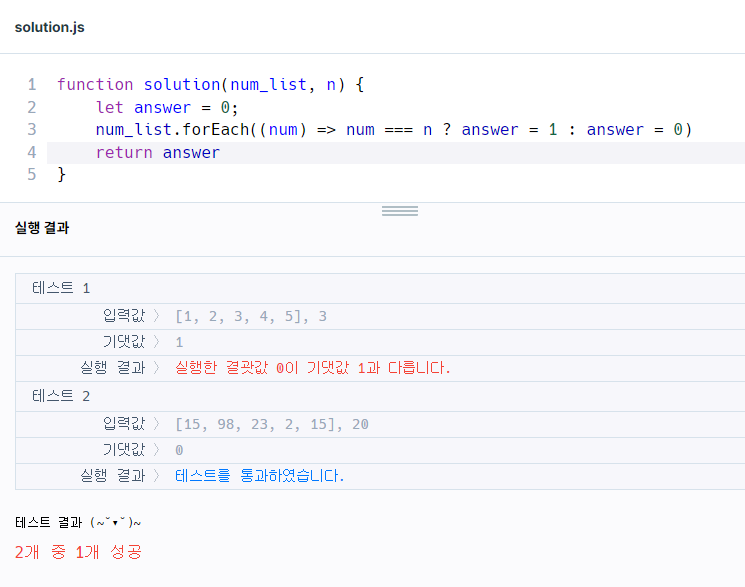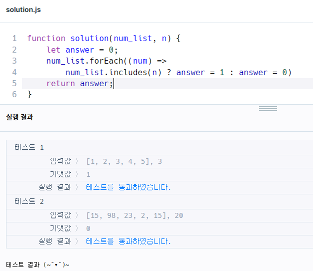 배열의 항목에 특정 값이 포함되어 있는지를 판단하여 true 또는 false 를 반환한다.