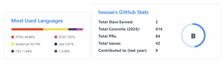 이 외에도 이거 쓰면서 알아보니까 몇시에 커밋을 주로하는지와 총 커밋,pr 등등 횟수를 보여주는게 있던데!!!